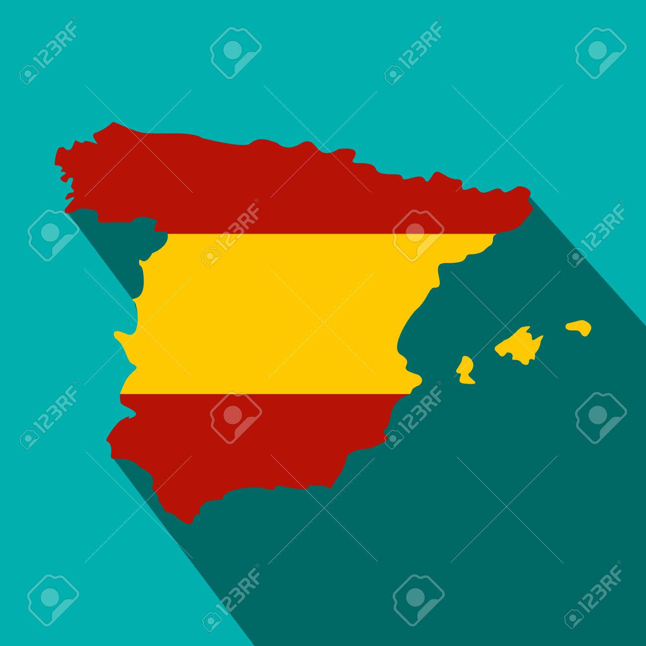 Carte De L Espagne En Espagnol Couleurs Du Drapeau Icone Dans Le Style A Plat Sur Un Fond Bleu Clip Art Libres De Droits Vecteurs Et Illustration Image